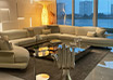 Composizioni e misure a richiesta con l'aggiunta di una chaise longue sagomata. Struttura metallica imbottita in gomma uretanica indeformabile. Schienali curvi sovrapposti, a due profondità differenziate per un diverso comfort di seduta. Il taglio in diagonale dei cuscini di seduta si raccorda con la particolare forma dei cuscini degli schienali.