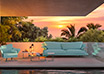 Divano lineare, angolare e sagomato con struttura e piedi in acciaio inox. Gli Schienali curvi sono sovrapposti a due profondità differenziate per un diverso comfort di seduta. Il taglio in diagonale dei cuscini di seduta si raccorda con la particolare forma dei cuscini degli schienali. I divani possono essere rivestiti con i tessuti della nostra collezione outdoor che sono antistatici, inattaccabili da muffe e batteri e impermeabili all'acqua. È inoltre disponibile il winter set impermeabile e anti muffa.