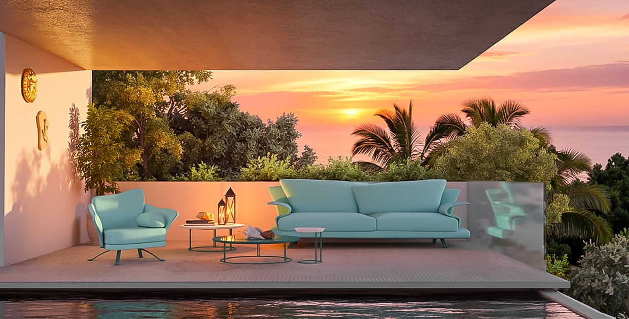 Divano lineare, angolare e sagomato con struttura e piedi in acciaio inox. Gli Schienali curvi sono sovrapposti a due profondità differenziate per un diverso comfort di seduta. Il taglio in diagonale dei cuscini di seduta si raccorda con la particolare forma dei cuscini degli schienali. I divani possono essere rivestiti con i tessuti della nostra collezione outdoor che sono antistatici, inattaccabili da muffe e batteri e impermeabili all'acqua. È inoltre disponibile il winter set impermeabile e anti muffa.